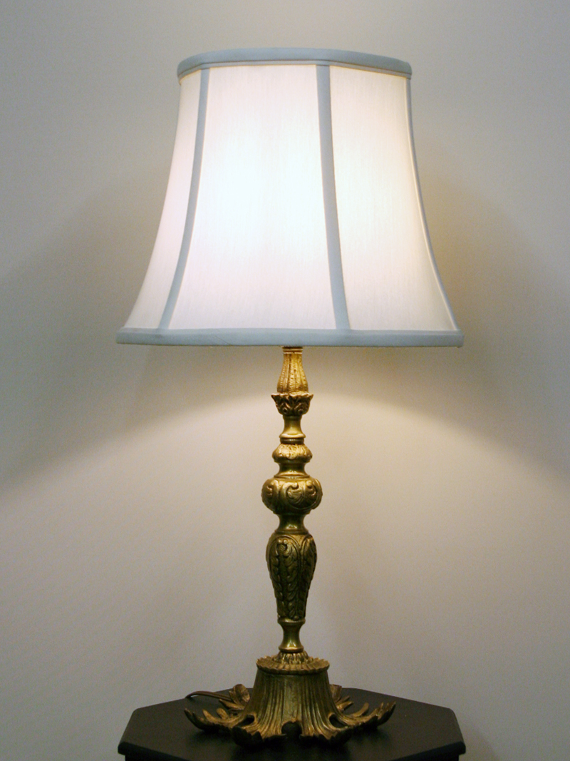 Acanthus Leaf Design Cast Brass Table Lamp has a Unique Leaf Design Footed Base. Base only. Circa 1950. 23 1/2″ H x 7 3/4″ W, One Edison 3-way bulb recommended. Lamp creates interest in a Hallway or Office.