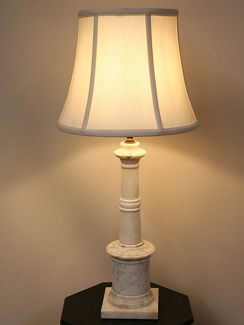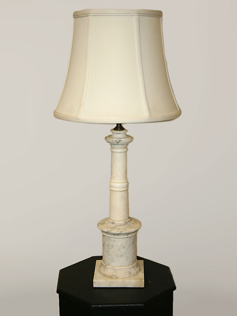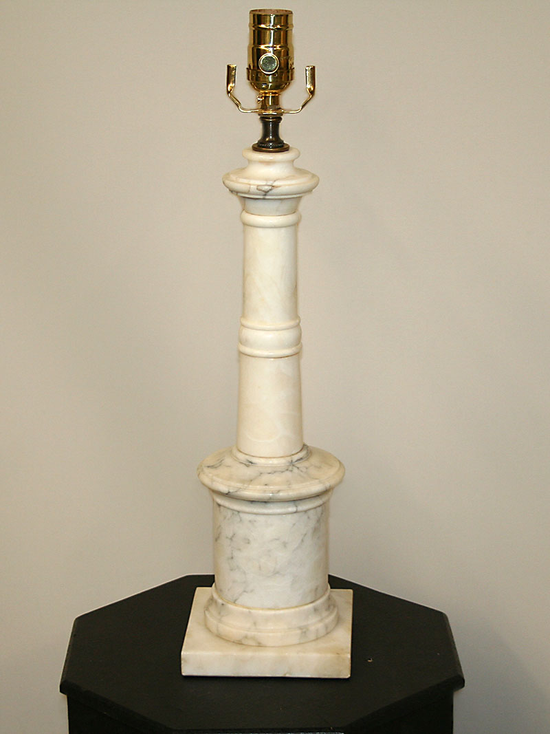 Vintage Alabaster Column Table Lamp, Made in Italy. Base only. Circa 1950. 20″ H x 5 1/4″ W, One Edison base 3-way bulb recommended. Lamp is perfect for an Office or Hallway.