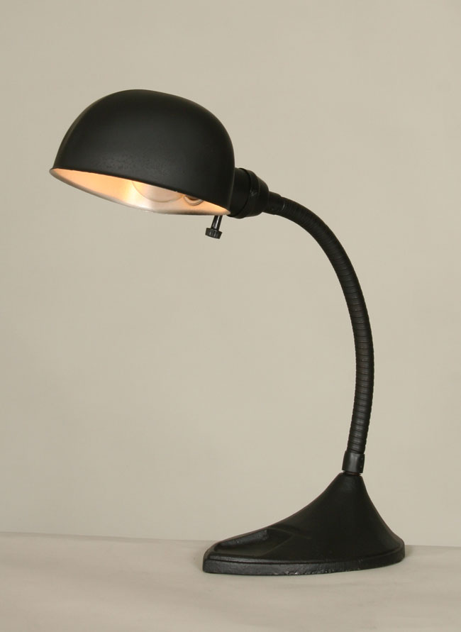 Vintage black articulated desk lamp. This would look great in an office or library. Circa 1930. 18″ H x 5 1/4″ W. One Edison base 60 watt bulb required.
