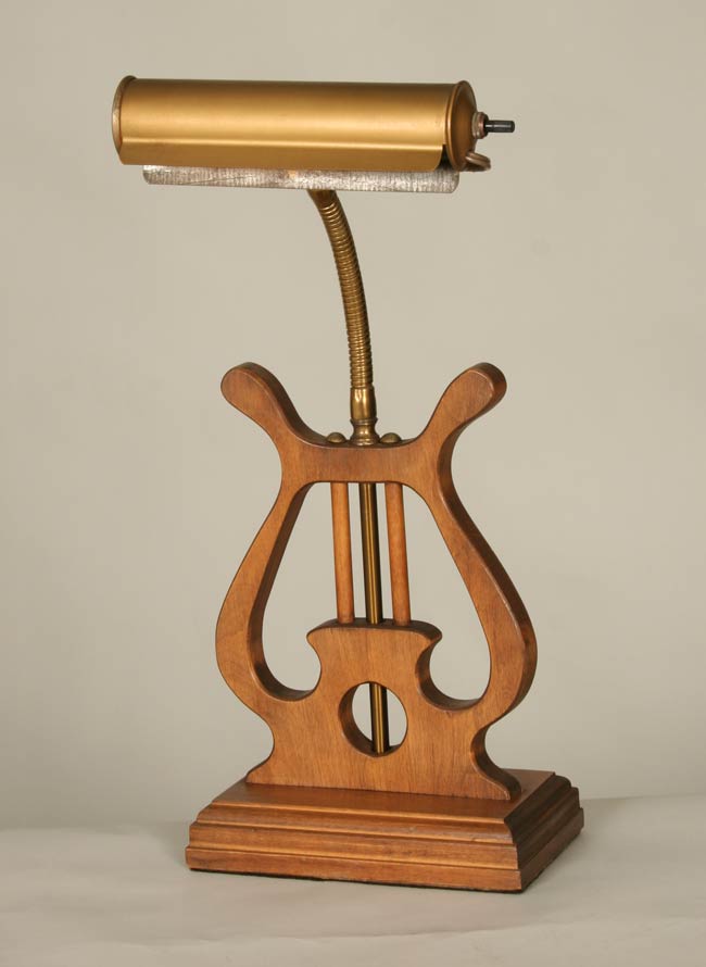 Vintage wood piano lamp, perfect for a music room. Circa 1950. 17″ H x 8.5″ W. One Edison 60 watt bulb required.
